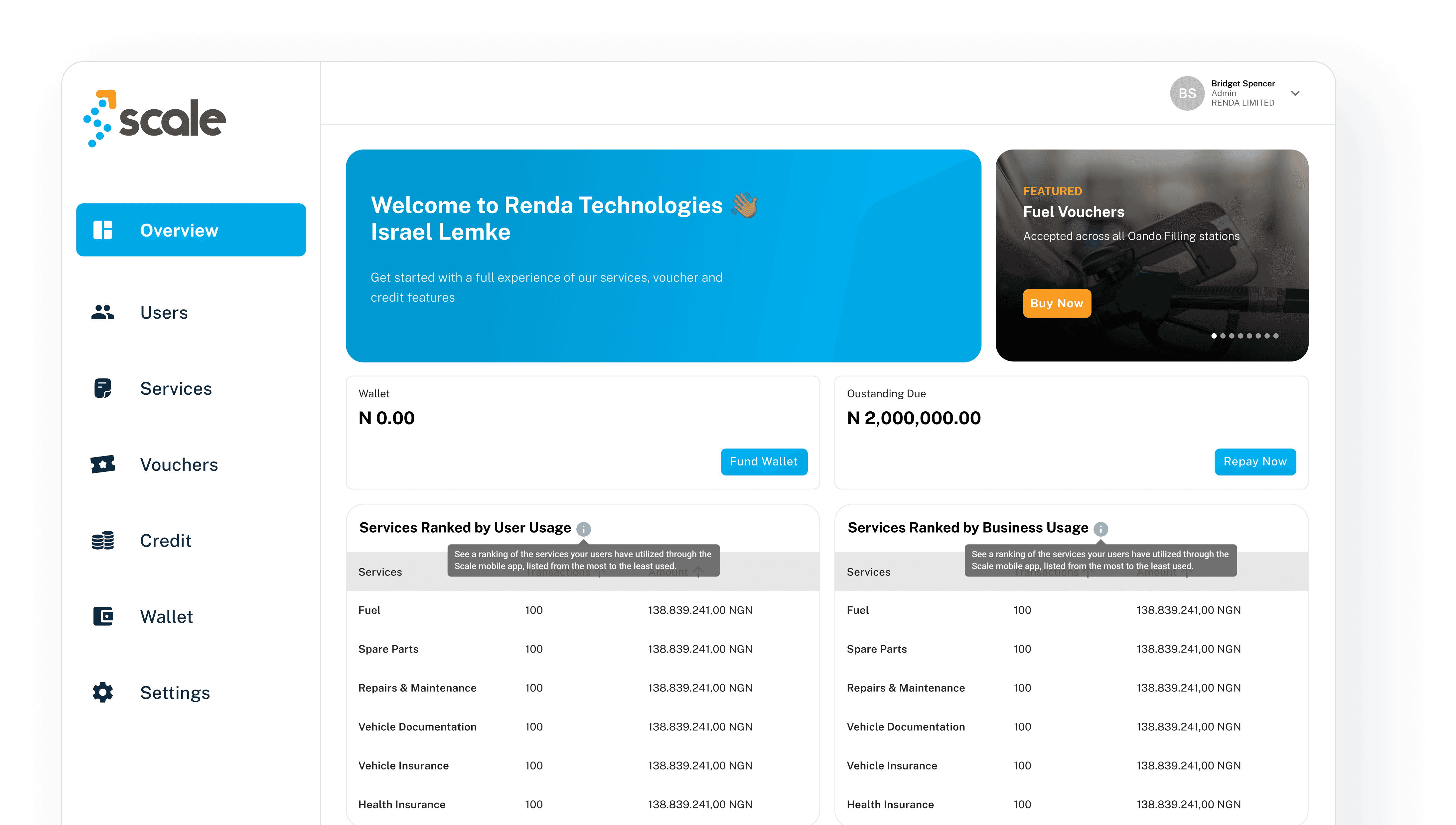Scale is an all-in-one mobility platform that provides credit, banking, and essential vehicle services for drivers and fleet businesses across Africa. We help you stay on the road, reduce downtime, and earn more.